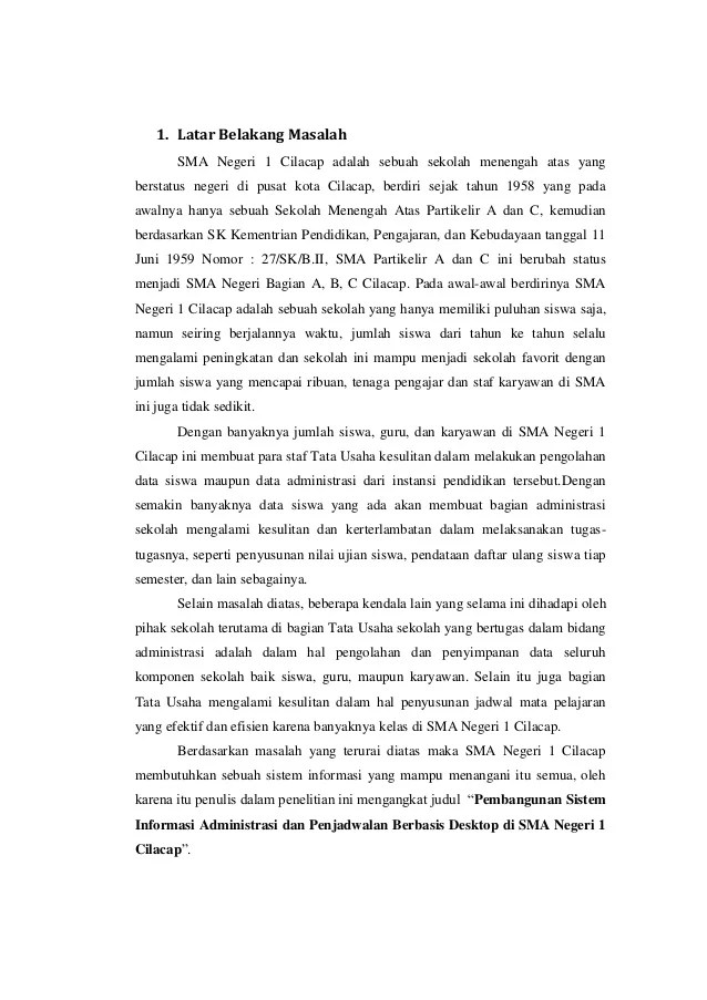 Contoh Judul Sistem Informasi Administratif Pada Percetakan : Sistem Informasi Administrasi Keuangan Sekolah Berbasis Intranet - Membuat sebuah program yang mengimplementasikan sistem informasi.. Pengembangan sistem informasi akademik stikom bali dalam reporting data mahasiswa; Atas tersusunnya laporan skripsi ini, … Prinsip utama sistem informasi skripsi ini adalah bahwa dosen menawarkan judul skripsi dan mahasiswa berkompetisi memilih judul yang ditawarkan. Perancangan sistem informasi administrasi kependudukan desa berbasis website pada desa winong akhmad syukron program studi sistem informasi universitas bina sarana informatika kampus kabupaten banyumas akhmad.khy@bsi.ac.id abstract: Inilah contoh judul skripsi sistem informasi manajemen (sim) tersebut: